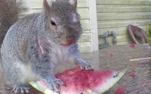 松鼠吃瓜,萌态十足